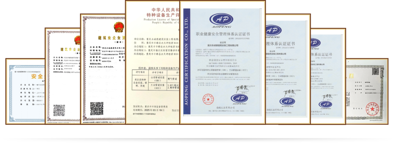 公司设有总经办、综合管理部、财务部、工程技术部、质量安全部、物资部等行政和质量安全专职管理部门;设置有符合要求的档案室、焊材一二级库、设备及材料库、焊接试验场地等;安装设备及检测仪器装置充足。现有职工百余人直接从事压力管道安装的工程师、助工及技术人员近50%,还拥有特种设备焊接作业人员、管工、Q1起重指挥、无损检测人员、理化检验人员等持有专业技术资格证的特种设备作业人员和检验人员,可提供专业的市政工程施工、燃气管道安装、维修等服务。”